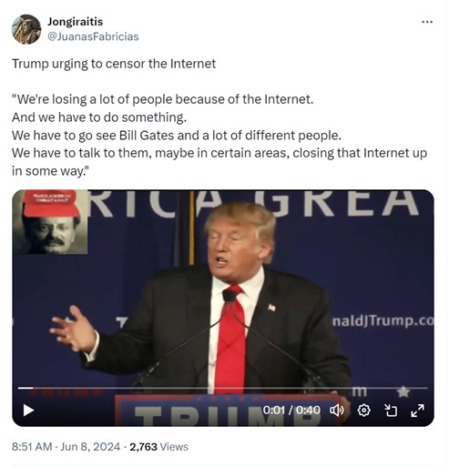 What about the global war on free speech that is intensifying with arrests of Richard Medhurst in England, C.J. Hopkins in Germany, and Pavel Durov in France. Is Donald Trump, “his son, his biggest donors, and closest friends,” going to wage the fight against the restriction of free speech on the internet? Is the Trump Republican administration (perhaps with junior member RFK Jr. taking the lead) going to exert the tremendous pressure that is necessary, and could come from the president of the United States, to stop the worldwide assault on freedom of expression through the internet?
